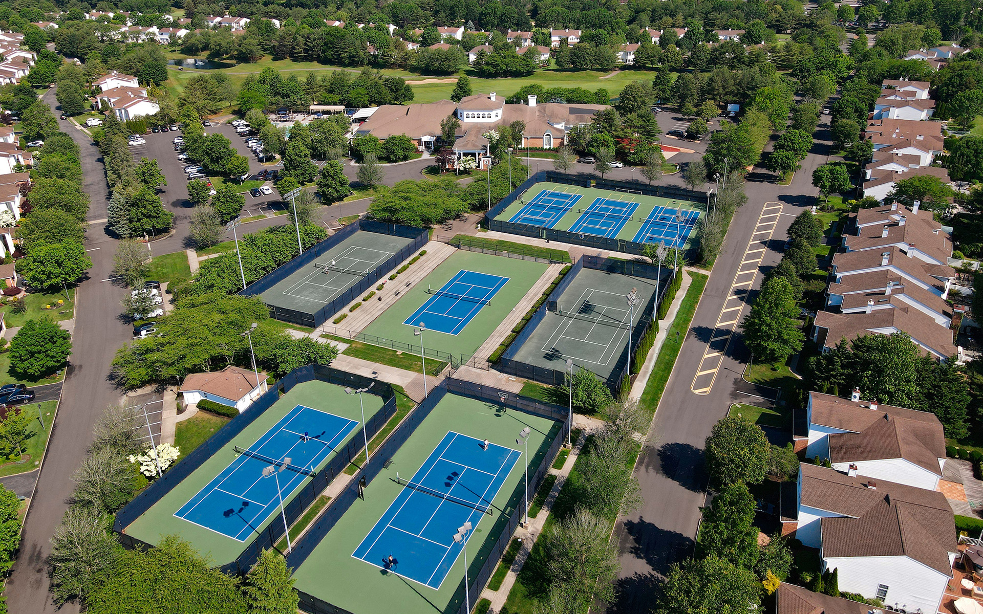 The Hamlet Golf and Country Club, once the home of The Hamlet Cup Tennis Tournament, is one of the most popular destinations for tennis enthusiasts in Long Island. Our well-equipped racquet sports facility includes eight outdoor tennis courts lit for nighttime play, six USTA caliber hard courts (one with stadium seating), two beautiful Har-Tru courts, and six pickleball courts. We specialize in a wide range of tennis and pickleball programs, including lessons, clinics, junior instruction, and a full spectrum of competitive and social events. If you're looking to improve your tennis game or just out for a friendly social game with friends, The Hamlet is the place to be.