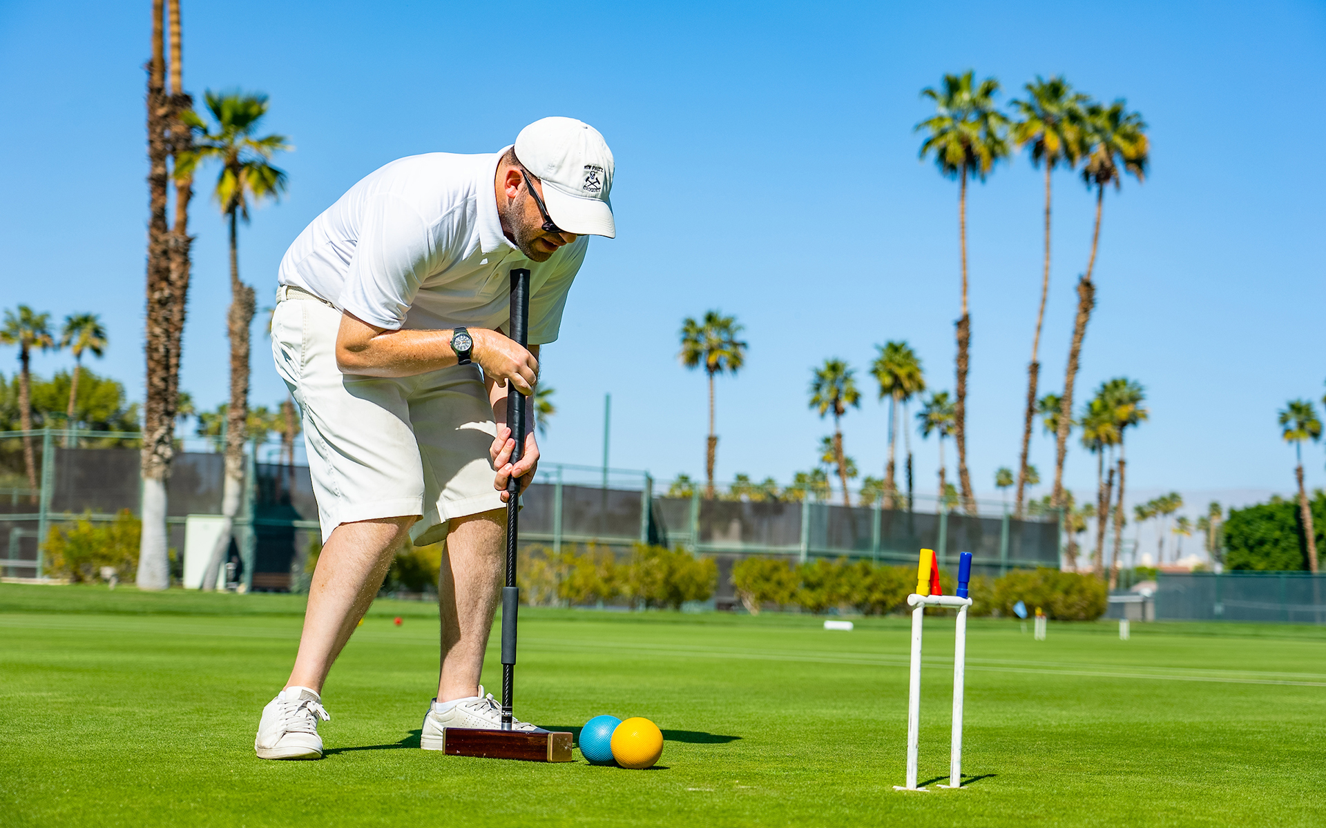 Croquet at Mission Hills offers a unique opportunity to learn six-wicket croquet—a challenging and strategic game derived from British traditions. Our teaching professional, Josh Freeth, one of the world’s top croquet players, is on-site from November to April. He leads group clinics and private lessons designed to guide you from beginner to advanced play.